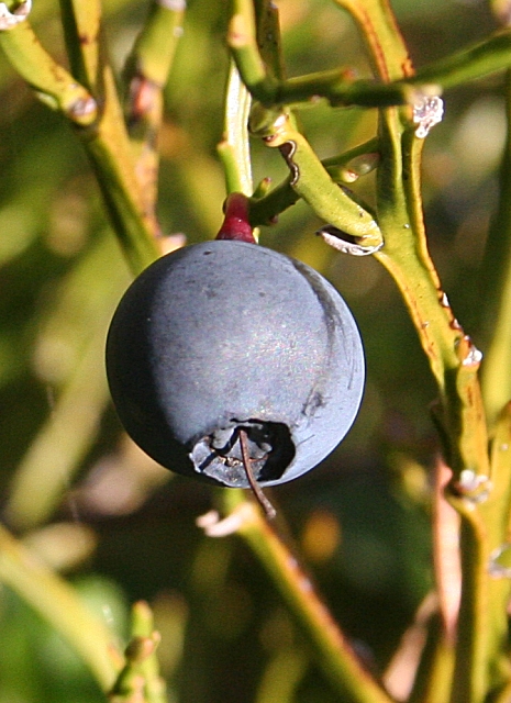 Huckleberry bush sizes range from 1 to 6 feet tall and are usually strewn among other shrubs and brambles. Keep an eye out for shiny, dark green leaves with smooth edges.