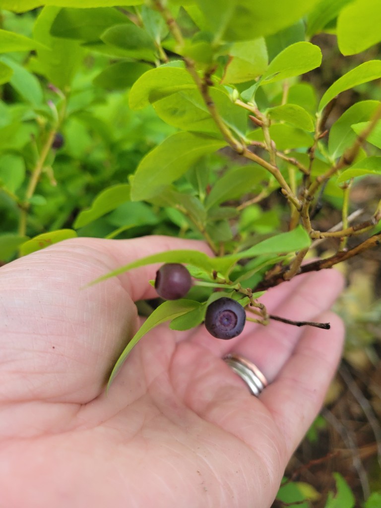 The bushes are often about waist-high, with thin, twiggy branches and smooth, dark green leaves. Once you know what to look for, you’ll start seeing them everywhere. But even then—it’s work. Your knees and back get sore, your hands get stained purple, and you’ll never quite fill a bucket as fast as you want to. But man, is it worth it.
